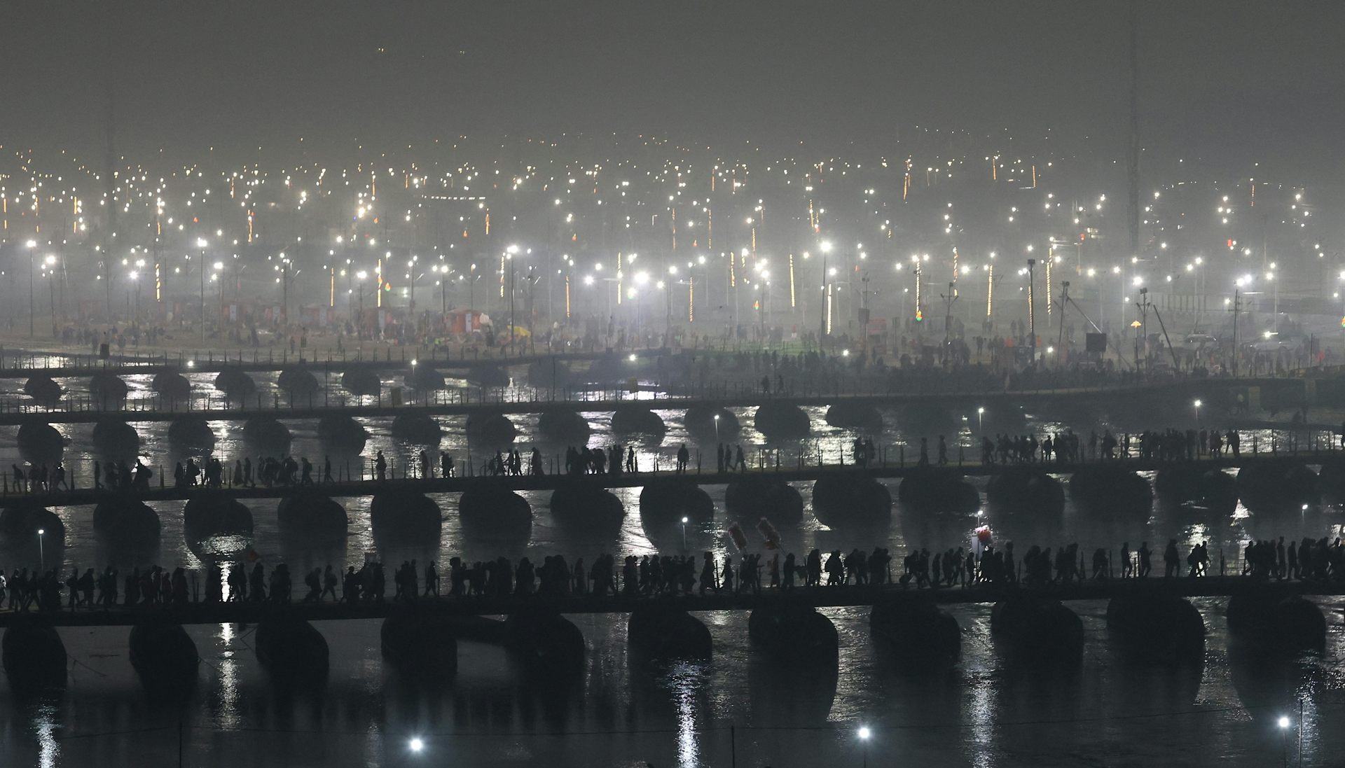 A temporary tent city has been erected on the riverbanks in Prayagraj, with some 160,000 tents, 150,000 toilets and temporary hospitals.