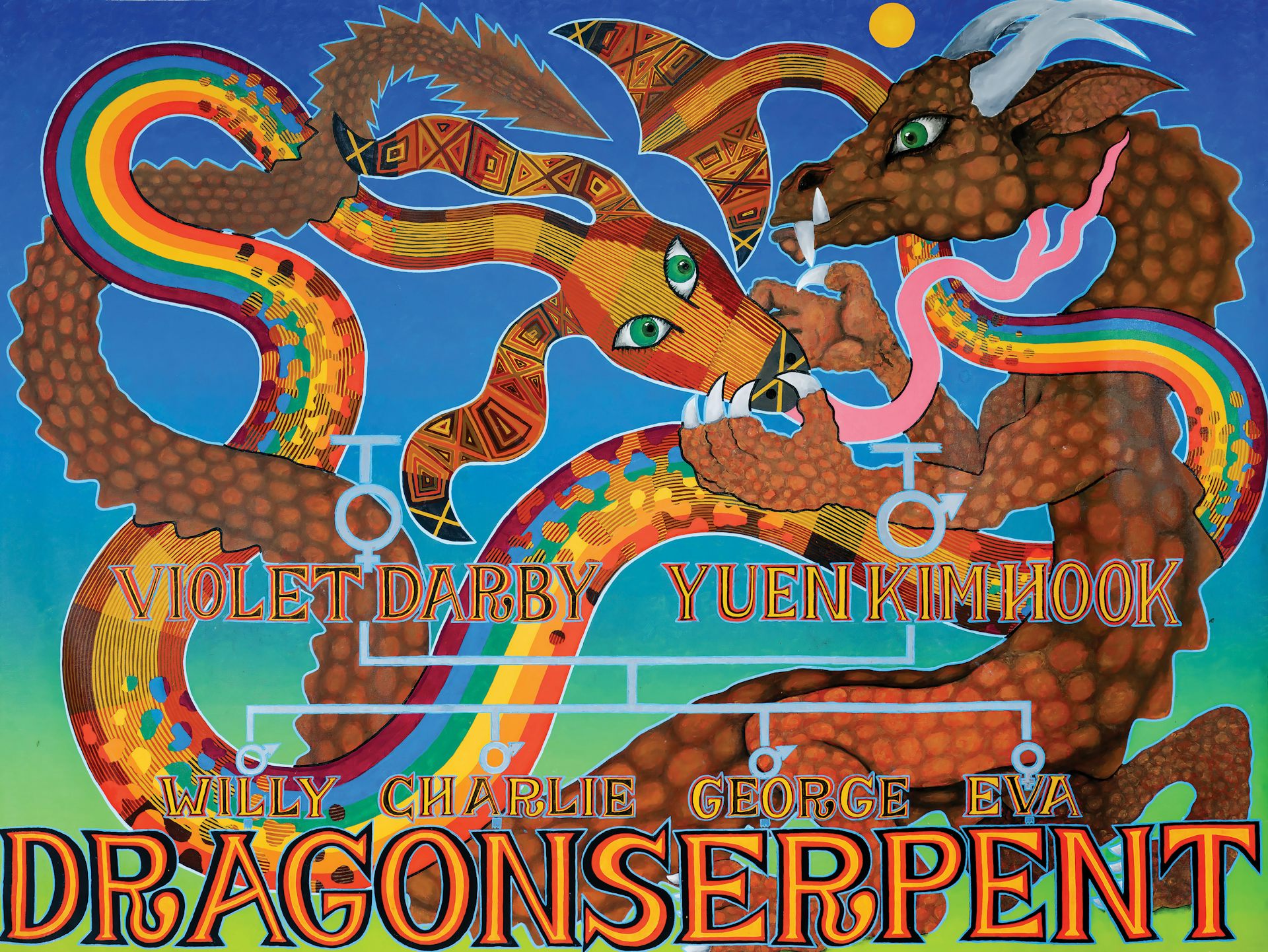 Dragonserpent, 2024, Gordon Hookey, oil on linen canvas, 179 x 237 cm.