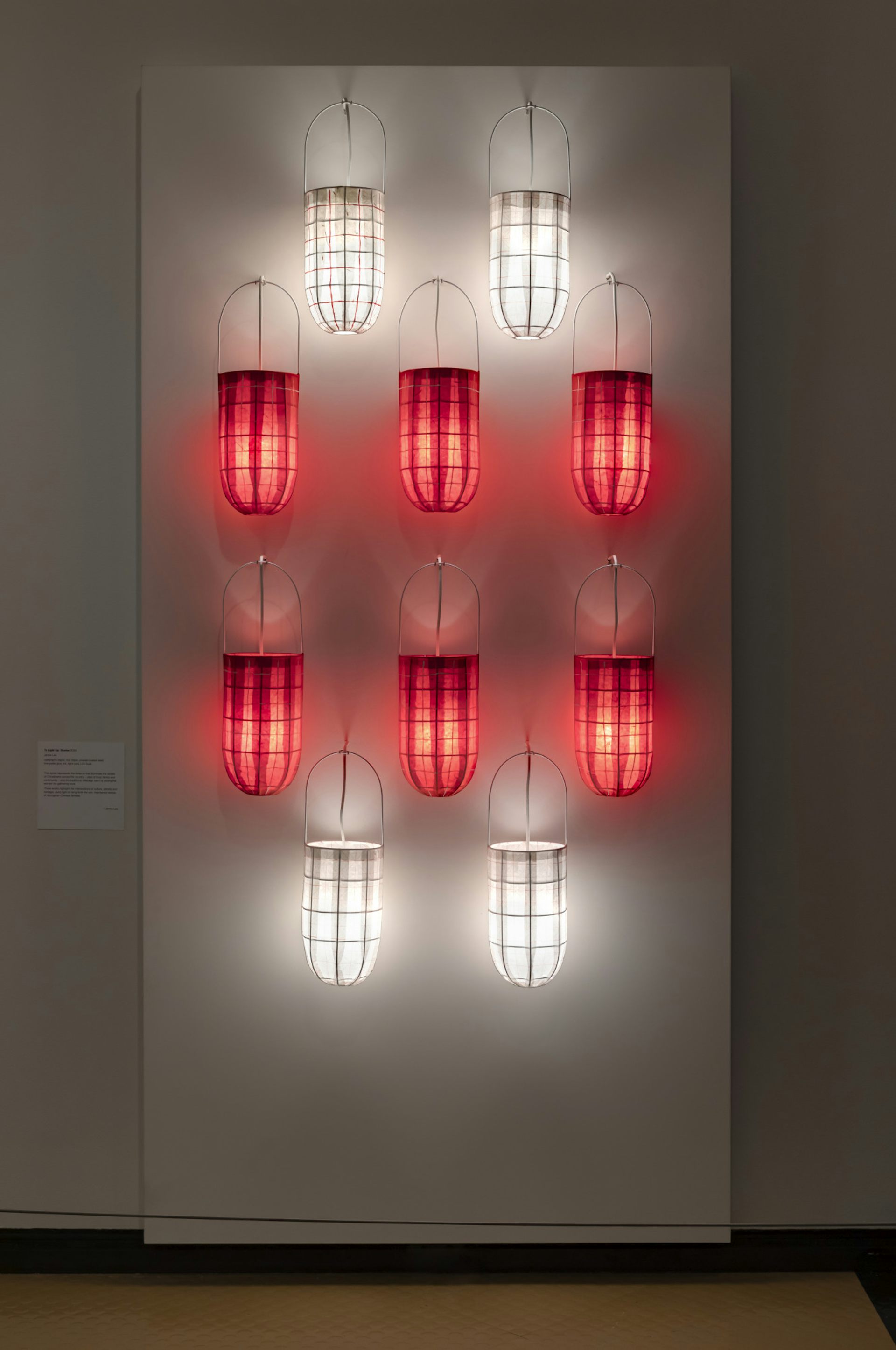 This variation on a Chinatown theme is taken up again by Gulumerridjin (Larrakia), Wardaman and Karrajarri artist Jenna Lee. Dillybag lanterns are recreated in rice paper and woven silk for her To Light Up installation and photographs.