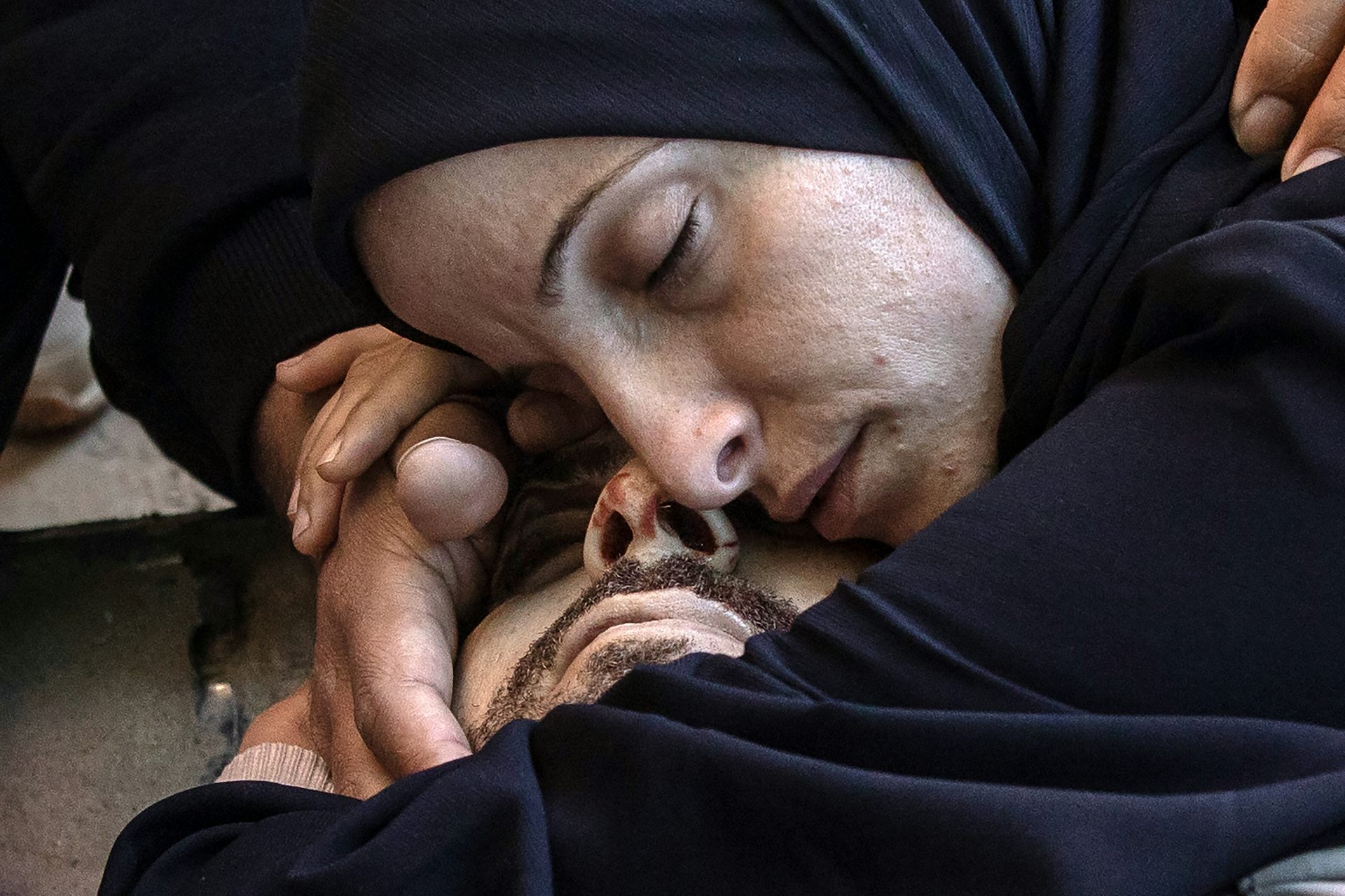 A relative mourns over the body of Al Jazeera correspondent Mohammed Wishah, killed in an Israeli drone attack in April.