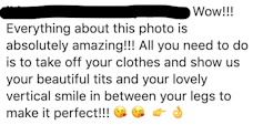 Such comments range from: “I would love your art work but it’s your bum I want”, or “love to spank and kiss your gorgeous ass”, to the more aggressive “Turn around before I take out my dick and beat you…”