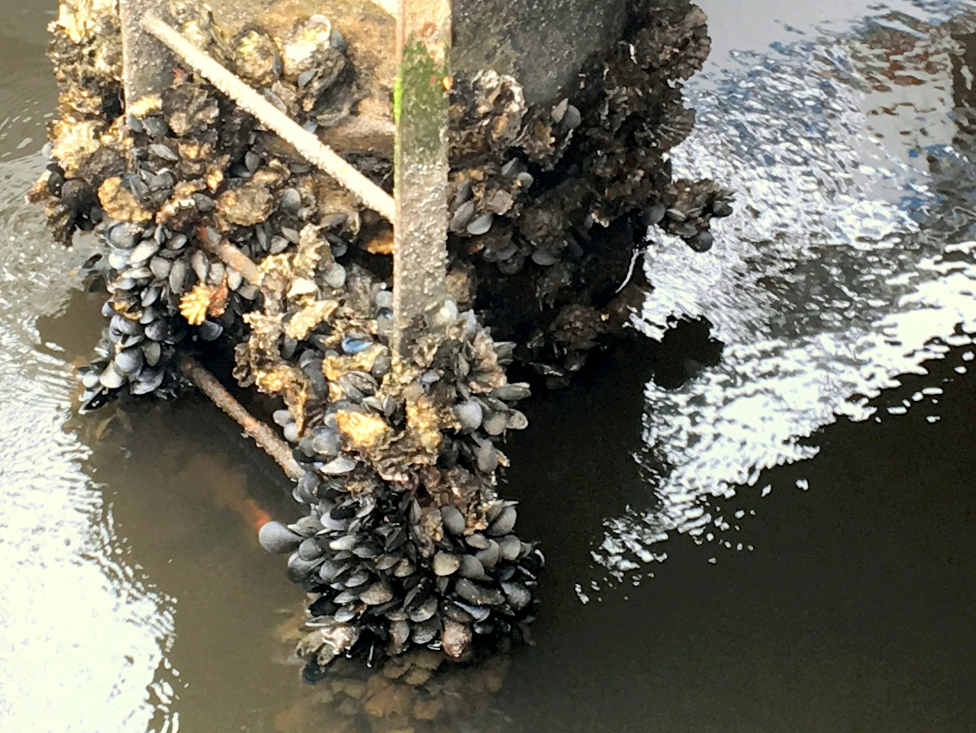 The sheltered and shaded nature of marine urbanisation disproportionately favours the development of dense invertebrate communities, as shown here in Port Phillip Bay.