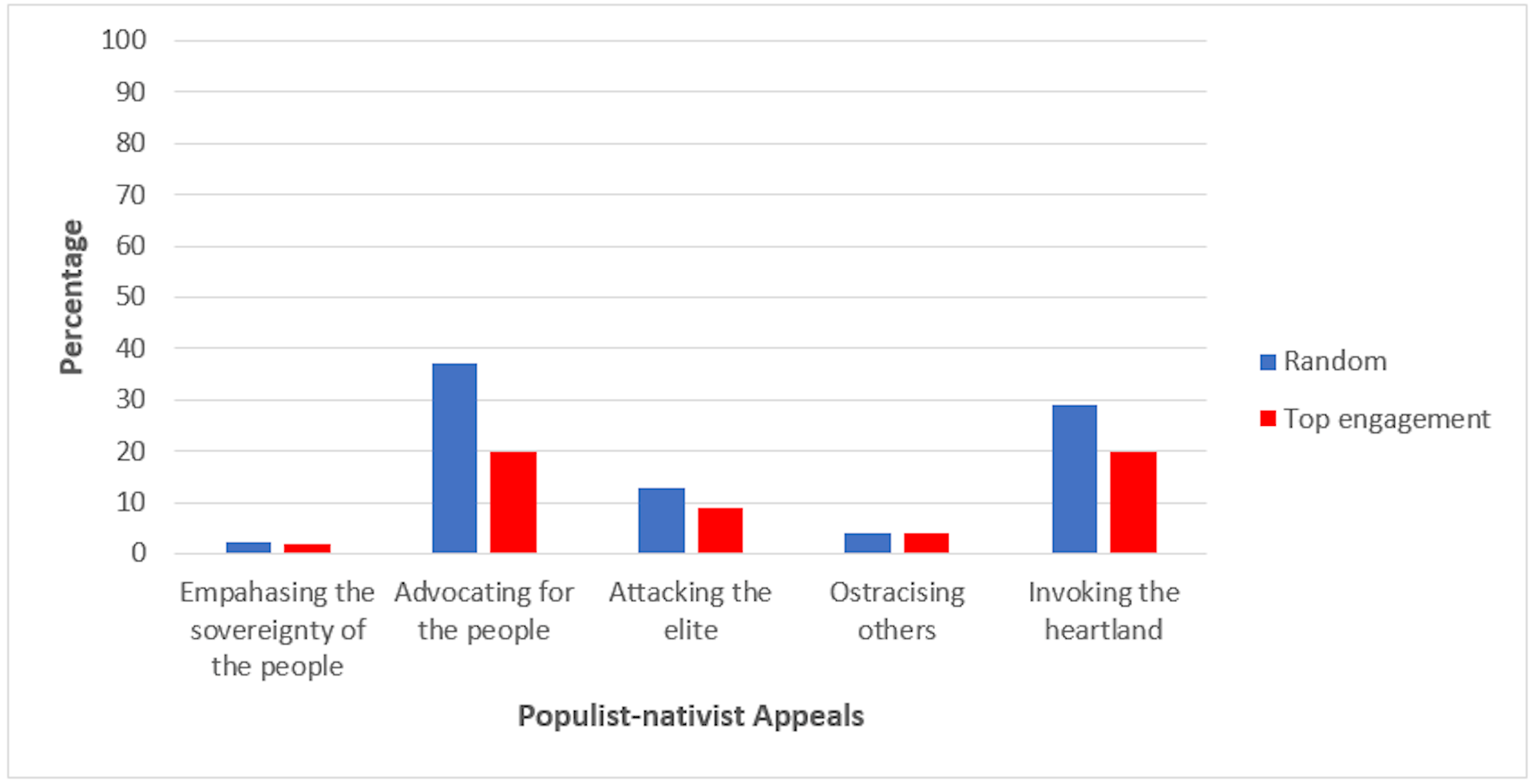 When I compared posts that have been measured for traits of populism and nativism, the inverse was observed. Populist and nativist appeals made by Australian party leaders received less support.