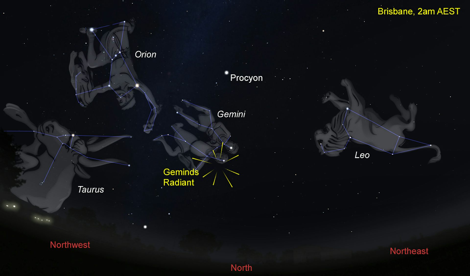 From the northern hemisphere, the Geminids produce more than 100 meteors per hour at their best. While the view from Australia isn’t quite as good, a keen-eyed observer can still see more than 50 meteors per hour at the peak – the most spectacular show of the year.