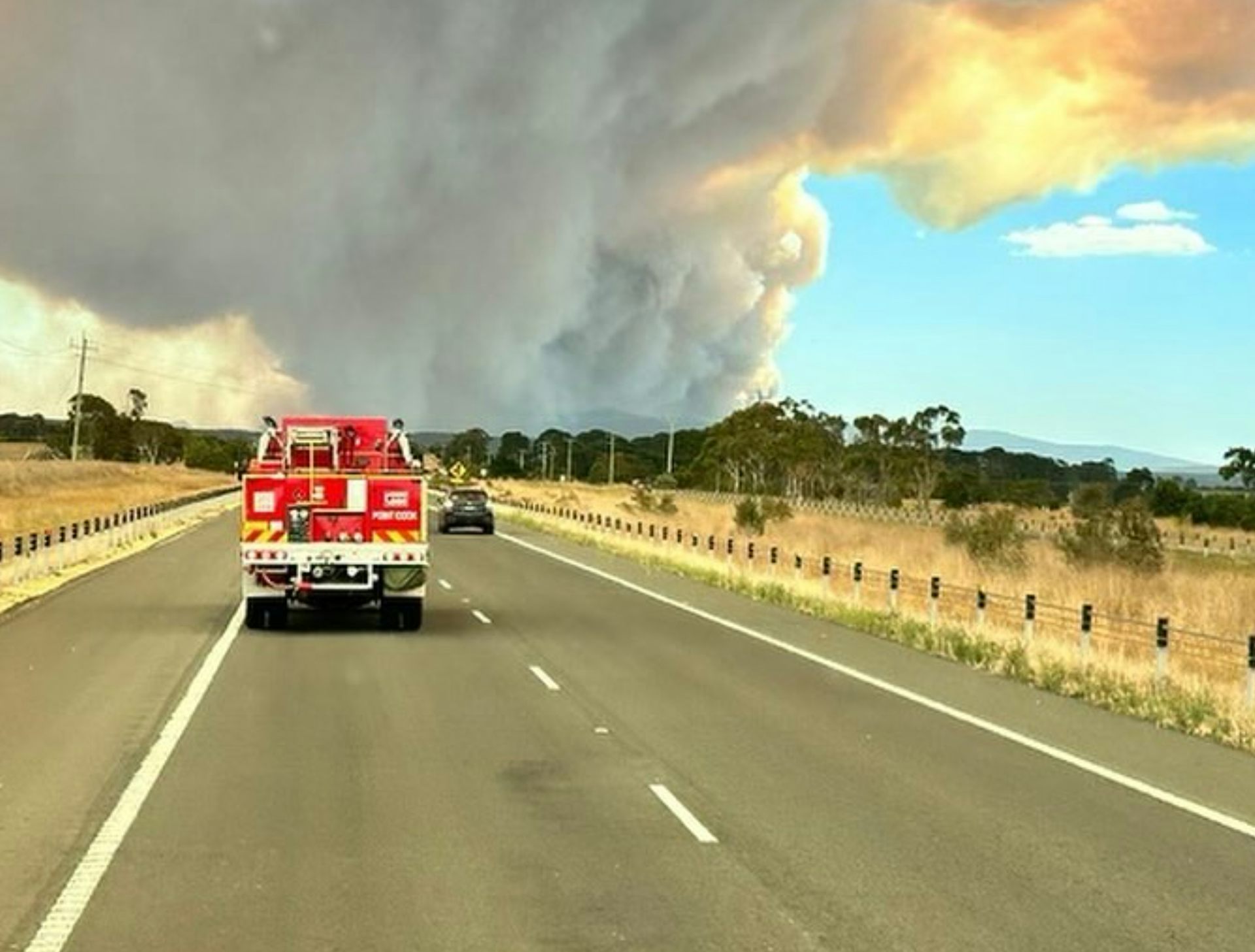 Australian conditions make the continent particularly vulnerable to the effects of global warming. Fire-fighters near a fire in Eastern Maar Country, Victoria, February 2024.