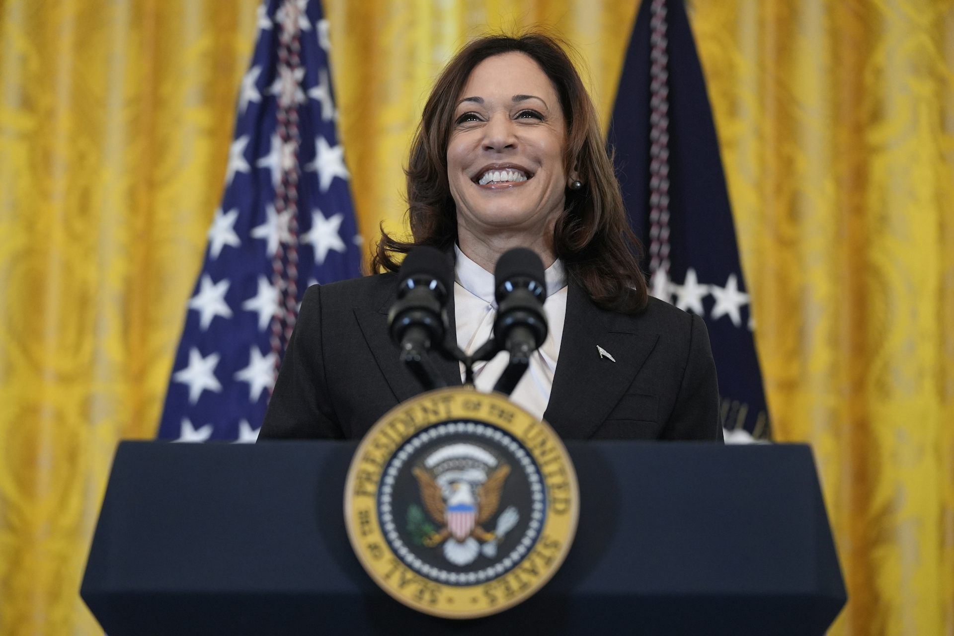 Current vice president and presidential candidate Kamala Harris speaking at the White House, March 18, 2024.