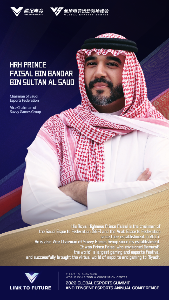 H.R.H Prince Faisal bin Bandar bin Sultan Al Saud : Chairman of Saudi Esports Federation,Vice Chairman of Savvy Games Group. Saudi Arabia has invested worldwide in the gaming and Esports industry. Their investment earlier this year in the Chinese Esports company VSPO was a major event in the industry. Prince Faisal bin Bandar will speak from an international perspective on the potential of Esports as a driving force of economic growth and business achievement.
