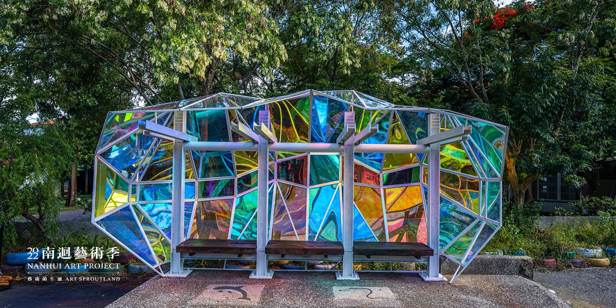 Eight works of art are making their way to the nooks and crannies sprinkled throughout the South Link Highway. Glimmering Pavillion, one of the pieces of art, created by Taiwanese artist Eric Chen, is a transformation of the old abandoned Daxi Elementary bus shelter using iridescent cellophane. The transformation is a reflection of Taitung's bright sunshine and adolescent imagination.