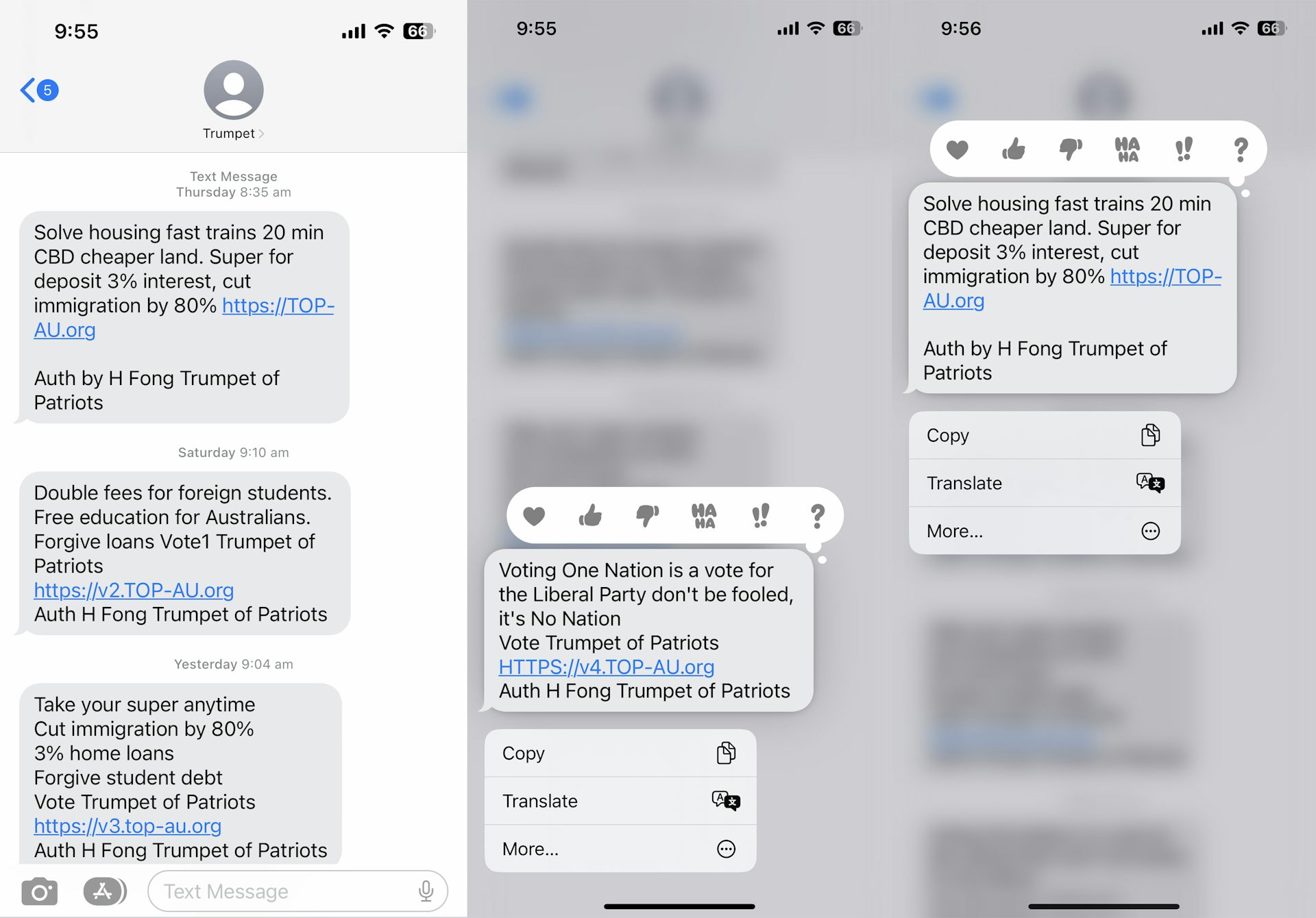 Another election, another wave of unsolicited political texts. Over this campaign, our digital mailboxes have been stuffed with a slew of political appeals and promises, many from the new party Trumpet of Patriots (backed by Clive Palmer, a veteran of the mass text campaign).