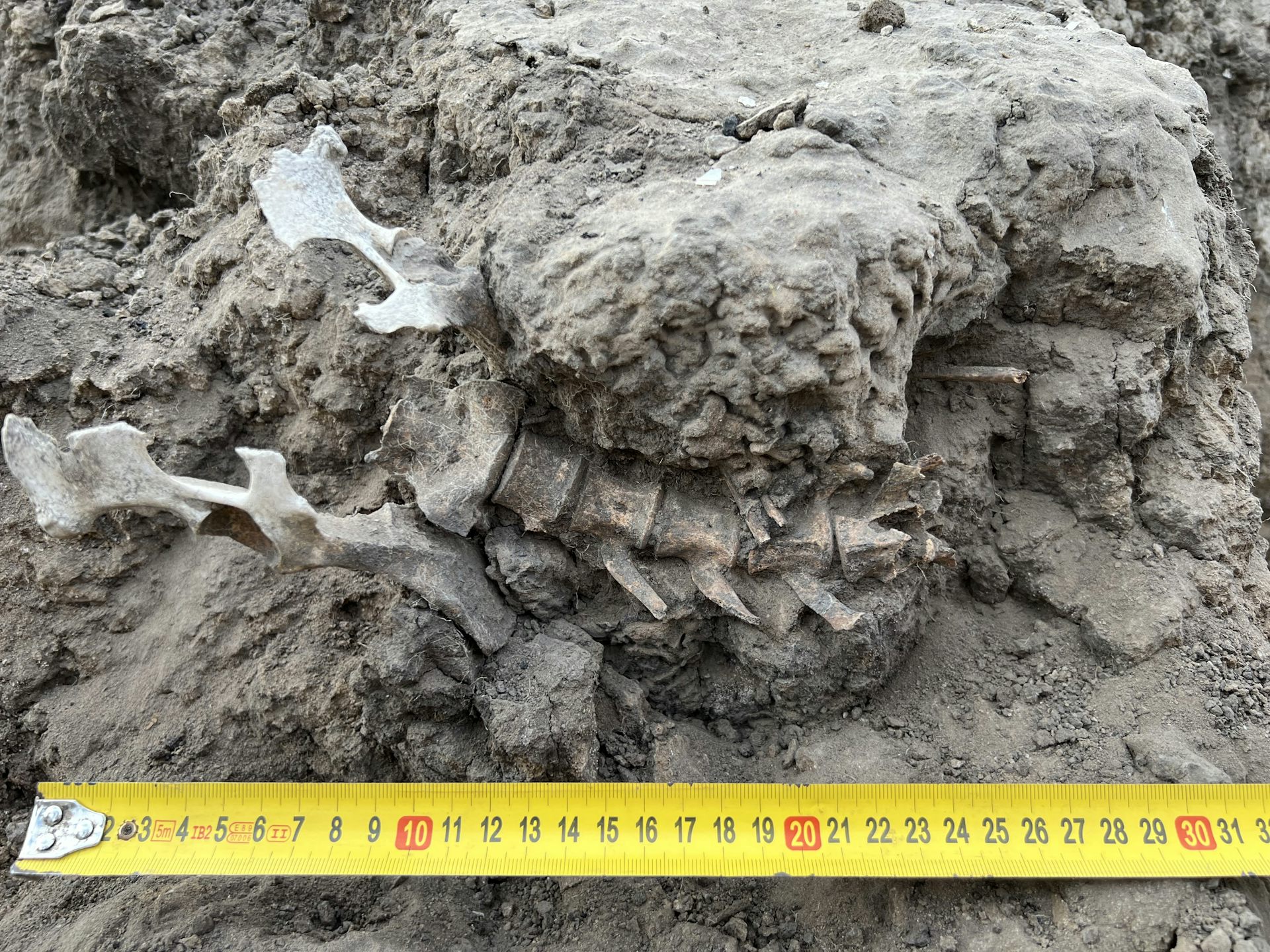 A good portion of the skeleton was still connected, and it was lying on its left side. We also know it was a male dog because the baculum or penis bone was present.